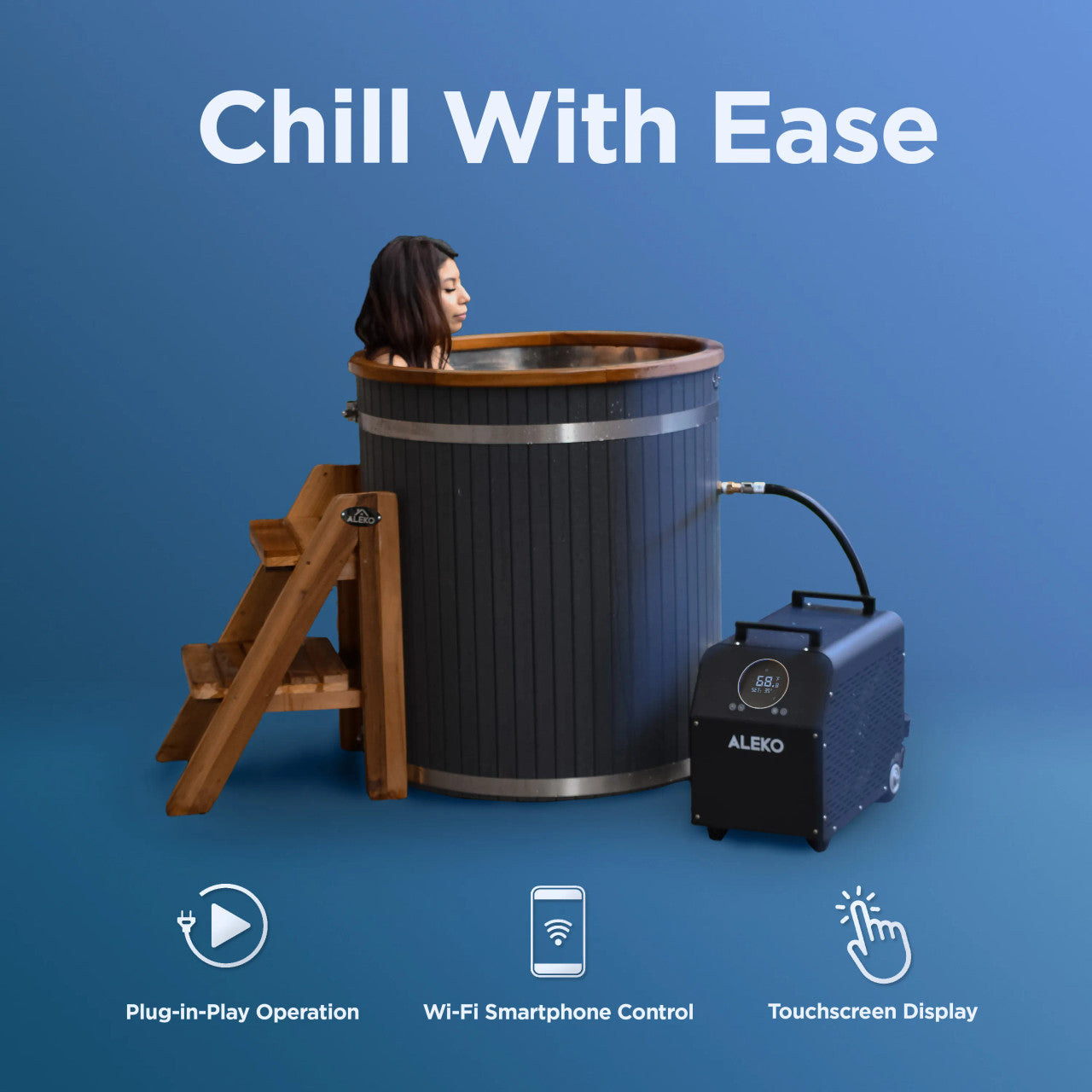 The chiller comes with Wi-Fi control, letting you adjust settings remotely, while its intuitive touchscreen display simplifies operation. You can also use the smartphone app to pre-schedule your preferred temperature, ensuring your cold plunge is always ready when you are. Ozone sanitation keeps your water safe and bacteria-free, and the dual filtration system ensures crystal-clear water.