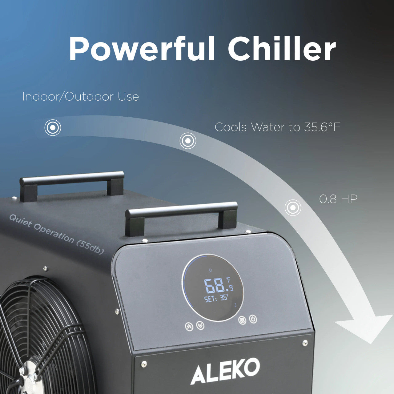 Experience the ultimate in cold therapy with ALEKO's Cold Plunge Tub and Chiller Kit, designed to enhance your wellness and recovery routine. The inflatable cold plunge tub is crafted from durable, puncture-resistant PVC with a cushioned bottom for added comfort and insulation. Thanks to the included 0.8 HP chiller, you can easily achieve your desired cold plunge temperature.